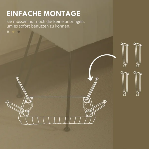 Šis HOMCOM suoliukas elegantiškas dizainas ir maksimalus komfortas. Ši 82 cm pločio sėdynė aptraukta dirbtiniu kailiu ir gausiai paminkštinta, kad užtikrintų neprilygstamą komfortą. Šis prieškambario suoliukas kartu su elegantiškomis juodomis metalinėmis kojomis yra stilingas bet kurio kambario papildymas ir praturtins jūsų namus skoningo rafinuotumo prisilietimu. Idealiai tinka kaip batų suoliukas jūsų įėjimo zonoje, kaip lovos suolas miegamajame arba kaip suolas svetainėje.
