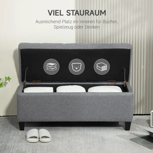 Minkštas suolas su daiktadėže Homcom 100x40x44cm., pilkos/juodos spalvos