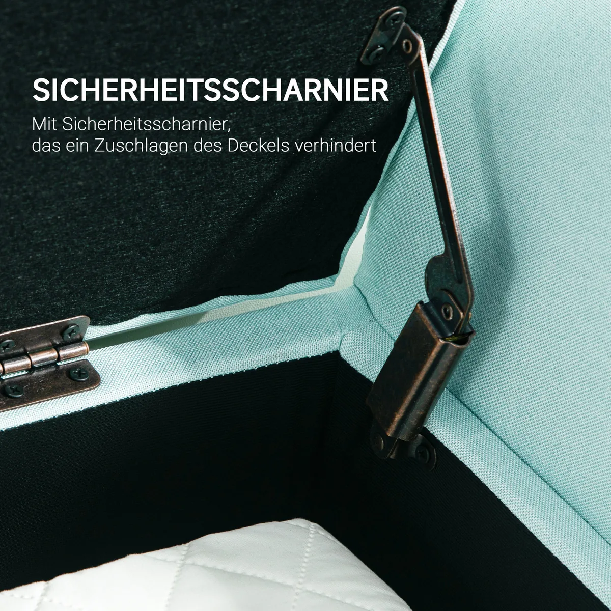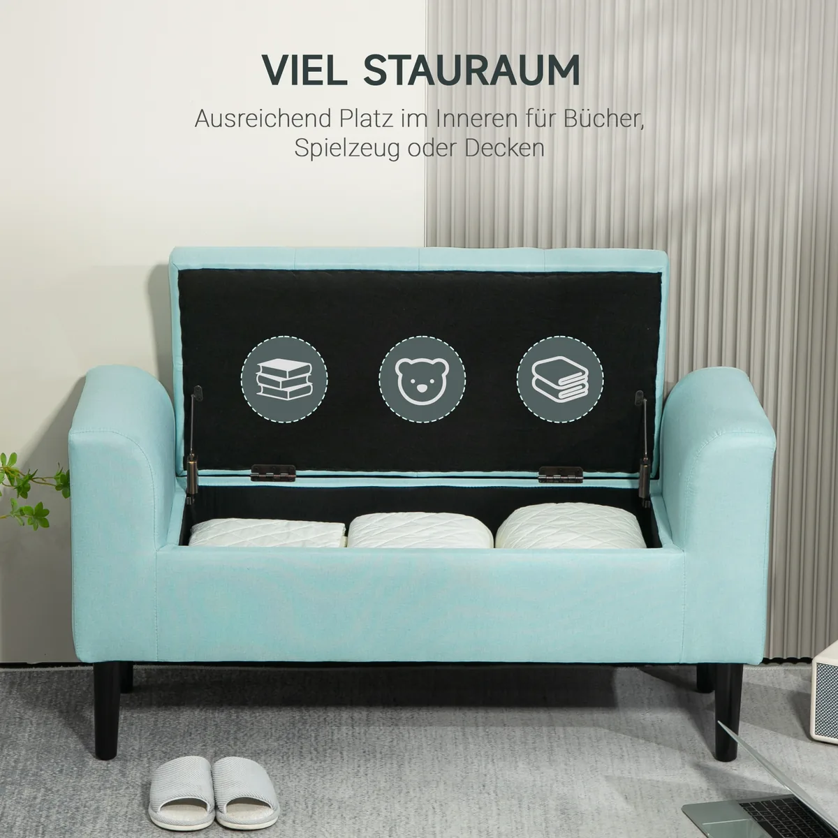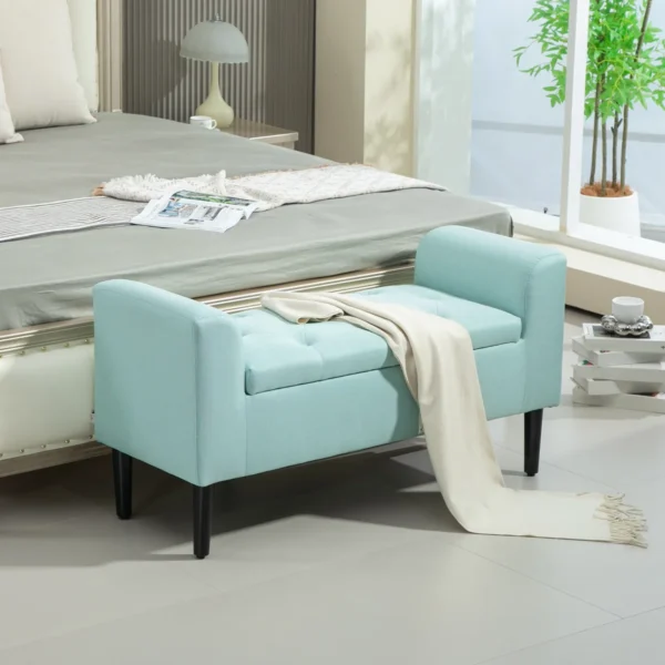 Minkštas suolas su daiktadėže Homcom 116x44x58cm., mėtinės/juodos spalvos