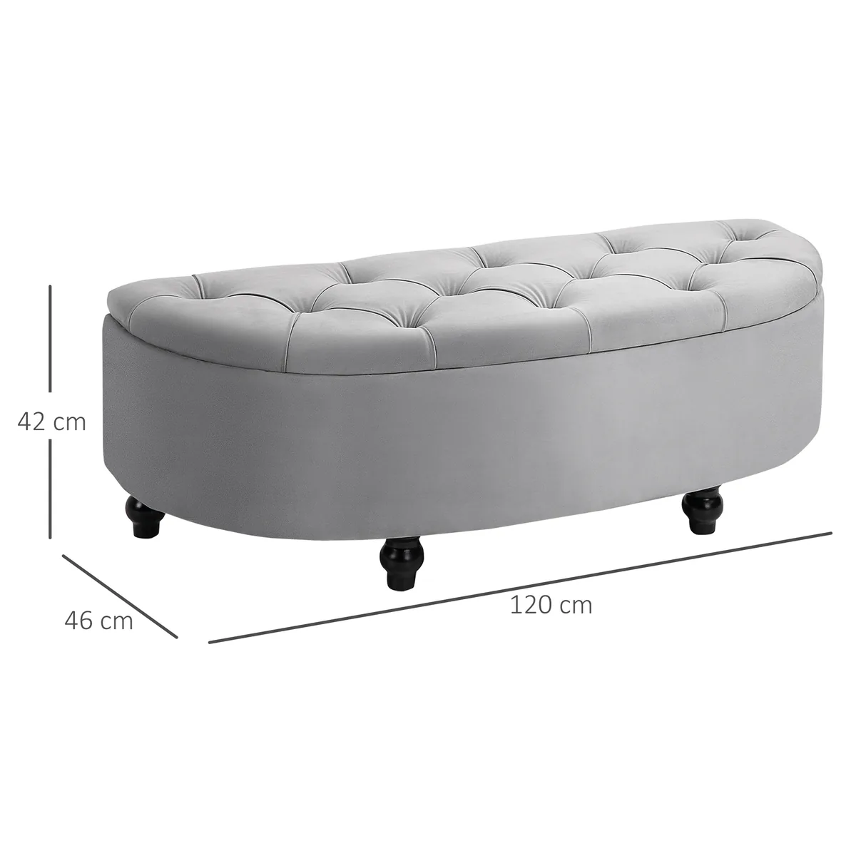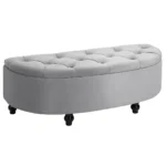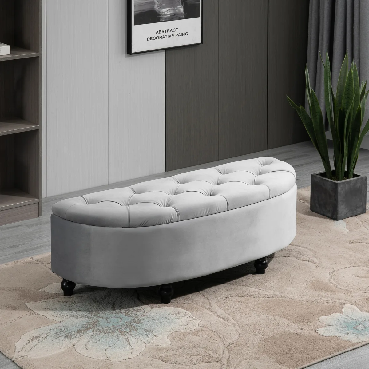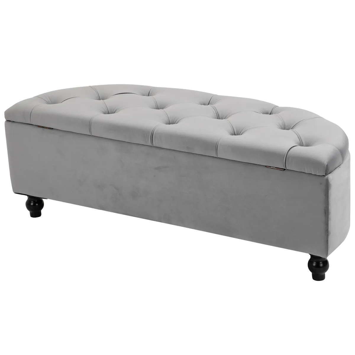 Patirkite nesenstančią eleganciją su mūsų išskirtine saugojimo kėdute. Meniškai pagamintos juodos gumos kojelės ir elegantiški pilko aksomo apmušalai suteikia jūsų svetainei, miegamajam, persirengimo kambariui ar biurui klasikinio prašmatnumo. Išnaudokite didelę vietą antklodėms, pagalvėms, nuotolinio valdymo pultams ar žurnalams laikyti. Šis suoliukas su daiktų laikymo vieta yra ne tik stilingas baldas, bet ir praktiškas jūsų namų organizatorius.
