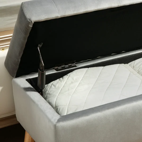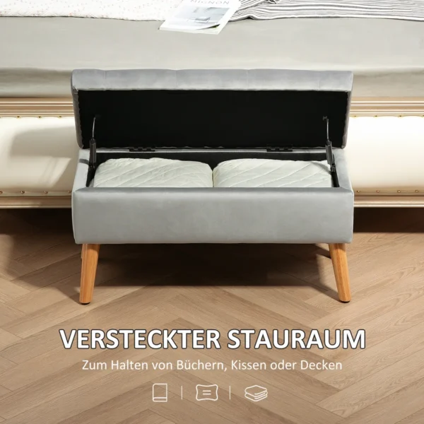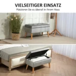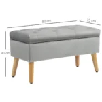 Minkštas suolas su daiktadėže Homcom 80x35x40cm., pilkos/šviesiai rudos spalvos