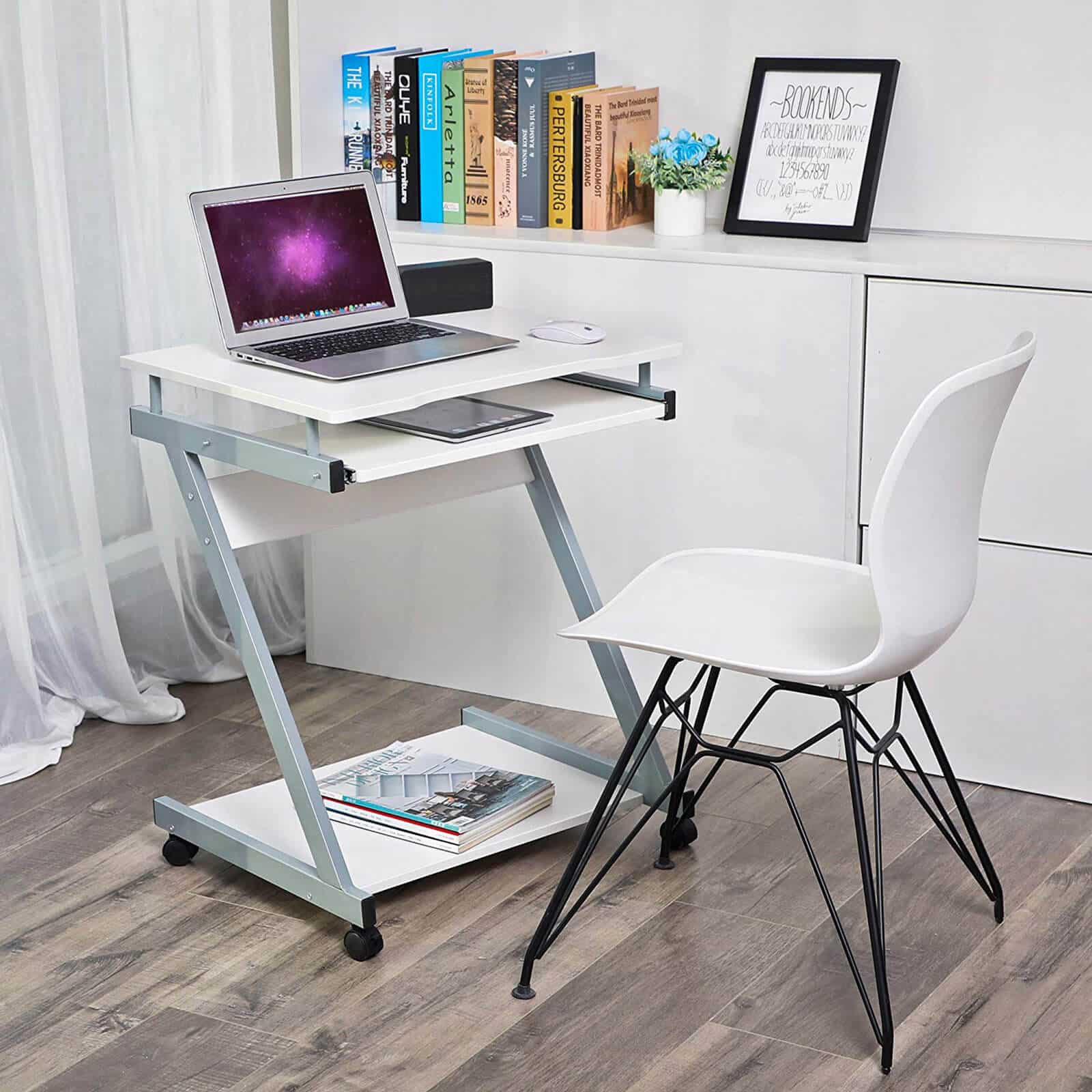 VASAGLE itin kompaktiškas kompiuterio stalas siūlo modernią eleganciją ir funkcionalumą tuo pačiu metu. Aiškios ir elegantiškos linijos užtikrina išskirtinį dizainą. Su klaviatūros lentyna ir 4 ratukais, šis nešiojamojo kompiuterio stalas yra labai praktiškas, patrauklus ir gali būti laisvai judinamas. Jis ne tik gražiai atrodo, bet ir užima mažai vietos.