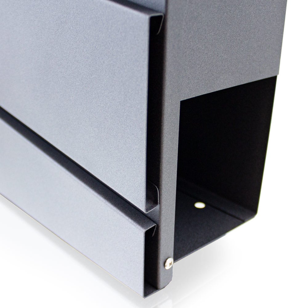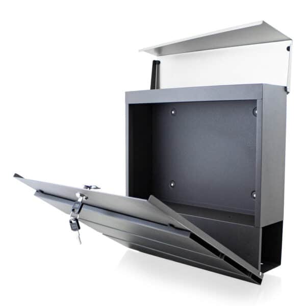 Pašto dėžutė yra rakinama ir dėl didelės talpos tinka ir įmonėms. Dėka didelių išimamos angos matmenų, pašto dėžutę lengva naudoti.Pridedama tvirtinimo medžiaga ir du raktai. Integruotas skyrius laikraščiams ir lankstinukams, Didelė talpa, Tinka ir verslui, Komplekte 2 atskiri raktai, Montavimo rinkinys. TECHNINĖ SPECIFIKACIJA: ; Matmenys (P/A/G): 370 x 370 x 110 mm, Laikraščių skyriaus matmenys (P/A/G): 370 x 90 x 80 mm, Įdėklo matmenys: 335 x 35 mm, Spalva: grafitas ir nerūdijantis plienas, Medžiaga: cinkuotas plienas, dažytas milteliniu būdu/nerūdijantis plienas, Medžiagos storis: 0,6-0,8 mm, Svoris: 2,9 kg. Skylės: Horizontalios: 23,0 cm, Vertikalios: 17,0 cm, Įstrižainės: 28,5 cm. PRISTATYMAS: 1x pašto dėžutė, 2x raktai, tvirtinimo medžiaga.
