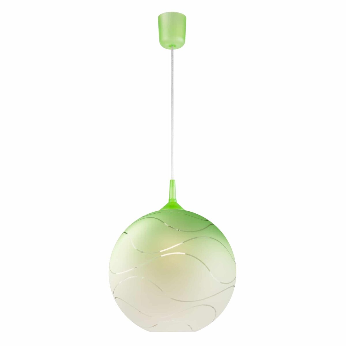 Modernus pakabinamas šviestuvas su apvaliu stiklo gaubtu, žalios spalvos