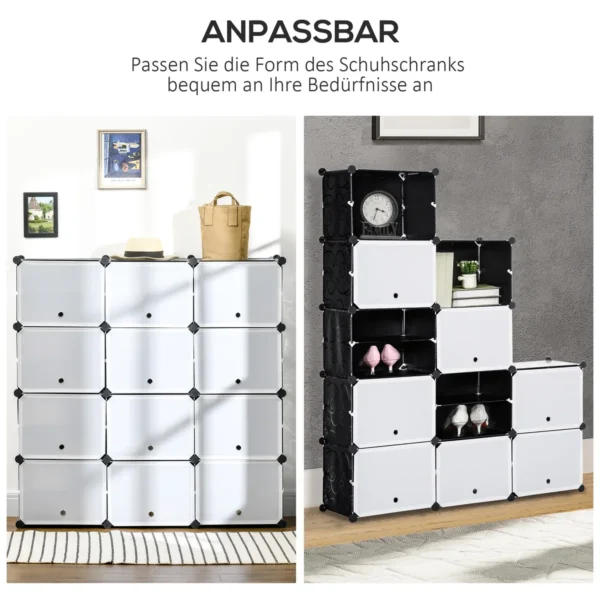 - ✔ Plokštes ir tarpines lentynas galima nuimti įvairiai ✔️liac> 12 kubo elementų, kurių kiekvienas turi horizontalią tarpinę lentyną, suteikia daug vietos įvairiems batams iki 44 batų dydžio (EU)