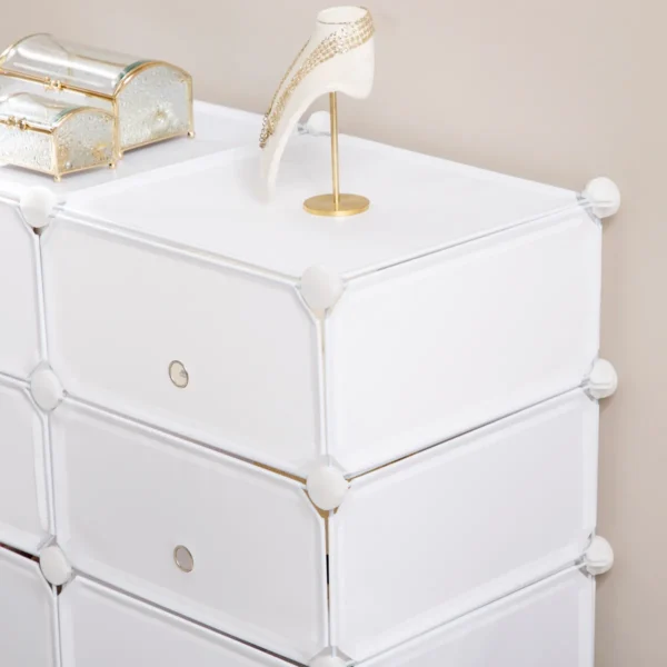 Ši daugiafunkcinė HOMCOM batų spintelė sukurta su moduline sistema. Skylius galite naudoti atskirai arba kartu, priklausomai nuo jūsų poreikių. Šioje praktiškoje spintoje galite laikyti drabužius, batus, žaislus, knygas ir daug daugiau. Jis pasižymi kompaktišku dizainu, neužima daug vietos ir puikiai telpa bet kurioje gyvenamojoje patalpoje.