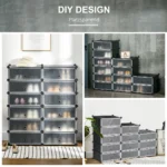 Atraskite „pasidaryk pats“ džiaugsmą ir kurkite įvairias laikymo galimybes naudodami modulinę HOMCOM batų lentyną. Jis pagamintas iš patvarios PP medžiagos, yra draugiškas aplinkai ir neteršia gamtos. Tvirtas metalinis rėmas užtikrina ilgaamžiškumą. Taip pat padeda rūšiuoti žaislus ir kitus daiktus, kad jūsų namuose būtų tvarka.