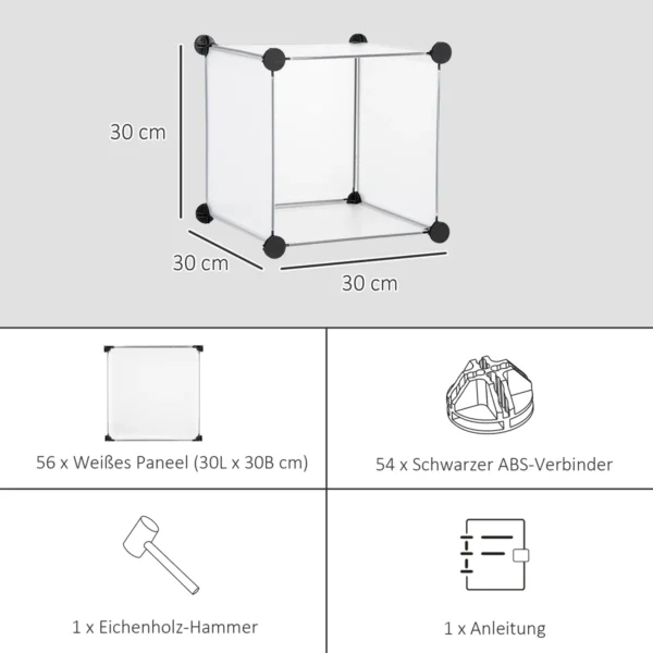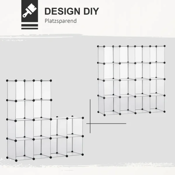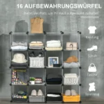 Ši modulinė HOMCOM lentyna yra lankstus saugojimo sprendimas. Nesvarbu, ar tai būtų trikampis, kvadratas ar stačiakampis, modulines dėžes galima pastatyti taip, kaip jiems labiausiai tinka – kartu, atskirti arba sukrauti. 16 kubelių suteikia daug vietos žaislams, drabužiams, amatų reikmenims, batams ir dar daugiau! Su šia moduline lentyna lengva susitvarkyti.