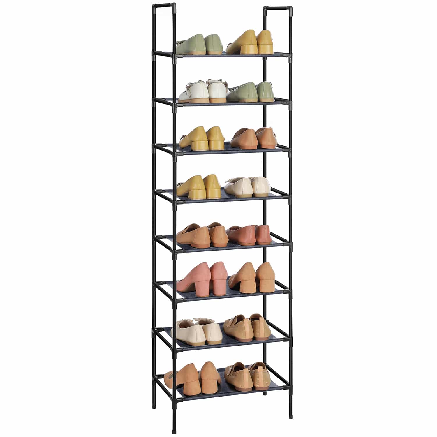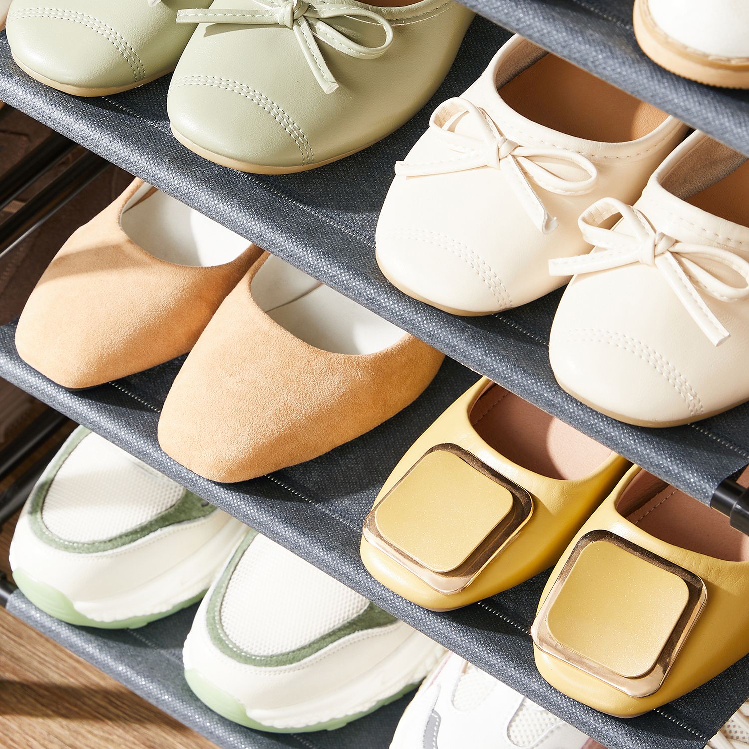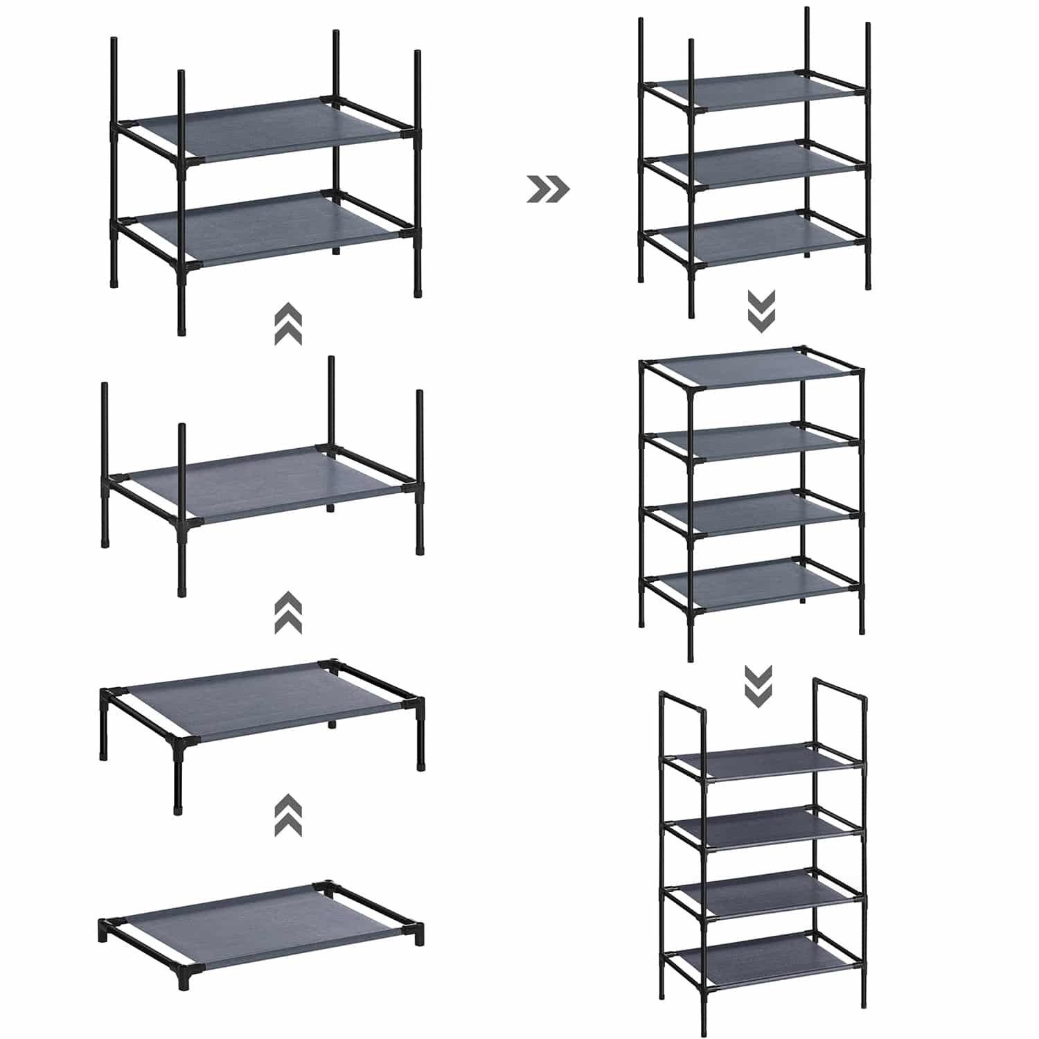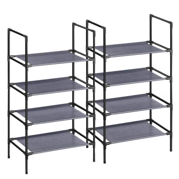 Pavargote nuo netvarkos savo batų kolekcijoje? Nesijaudinkite! Ši batų lentyna su 4 lentynomis yra puikus sprendimas. Sustiprinti metaliniai vamzdžiai ir aukštos kokybės plastikinės jungtys užtikrina aukštą stabilumą ir gerą atsparumą, todėl ši lentyna lengvai atlaikys jūsų batus. Be to, neaustinės medžiagos lentynos yra atsparios dilimui ir lengvai valomos. Dėl mažo svorio šią lentyną taip pat galite lengvai transportuoti. Kas valdo chaosą, tas valdo gyvenimą! Pasilepinkite šiuo vietos taupančiu stovu su 4 lentynomis ir suvaldykite batų chaosą.