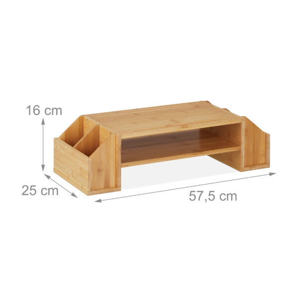 Praturtinkite savo darbo vietą su šiuo elegantišku ir funkcionaliu monitoriaus stovu, pagamintu iš aukštos kokybės bambuko. Šis stovas ne tik suteikia jūsų stalui estetinį akcentą, bet ir padeda palaikyti tvarką bei ergonomišką sėdėjimo padėtį.
