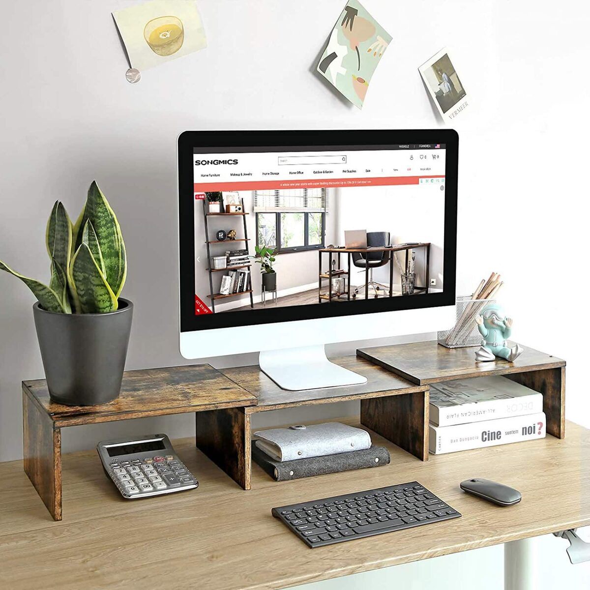 Ar jus erzina, kad jūsų failai ir užrašų knygelės yra išmėtytos po visą stalviršį? Kava yra būtina per ilgą darbo dieną, bet nerandate tinkamos vietos savo kavos puodeliui? Šis stalo organizatorius ateis į jūsų pagalbą! Didelė saugykla ir 3 skyriai apatinėje dalyje – vienoje vietoje galite laikyti mobilųjį telefoną, užrašų knygeles, puodelius, bylas ir kitus biuro daiktus.