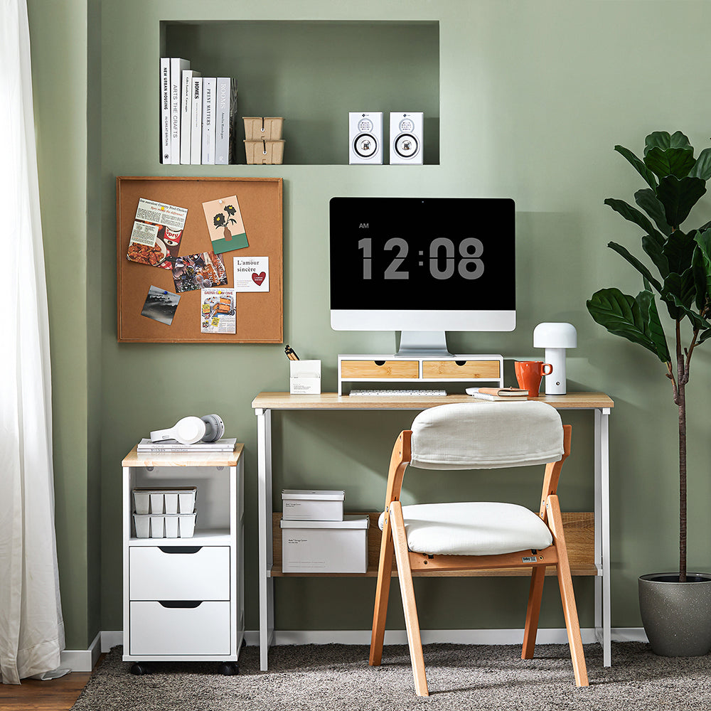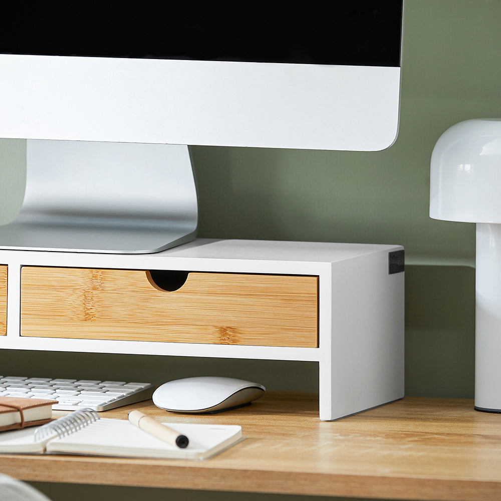 Monitoriaus stovas 47x18x11 cm, baltos/šviesiai rudos spalvos, yra puikus sprendimas jūsų darbo vietos organizavimui. Jo elegantiškas dizainas ir aukštos kokybės medžiagos užtikrina stabilumą ir ilgaamžiškumą, atitinkančius griežtus kokybės reikalavimus.