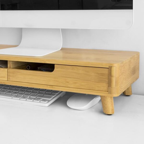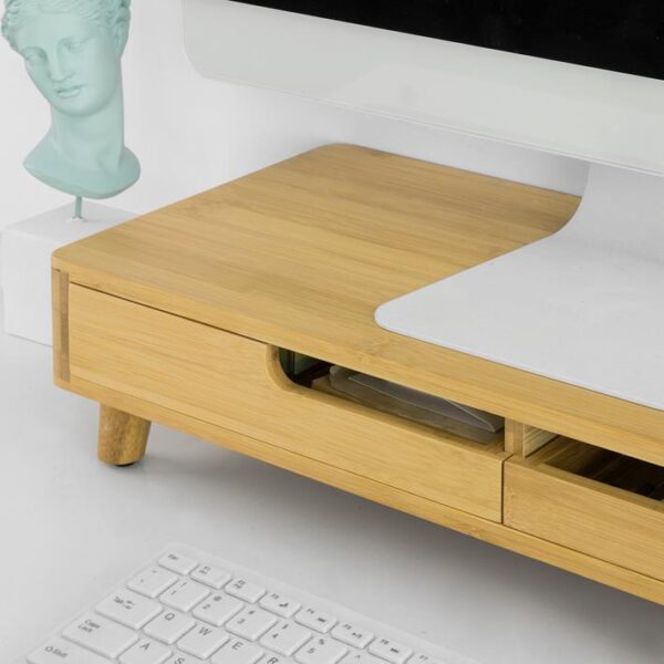 Pasirinkite šį aukštos kokybės monitoriaus stovą su dviem stalčiais, kad svarbiausi biuro reikmenys, tokie kaip rašikliai, užrašų lapeliai ir telefono įkrovikliai, visada būtų po ranka. Stovas pagamintas iš bambuko – lengvai prižiūrimos ir patvarios natūralios medžiagos.