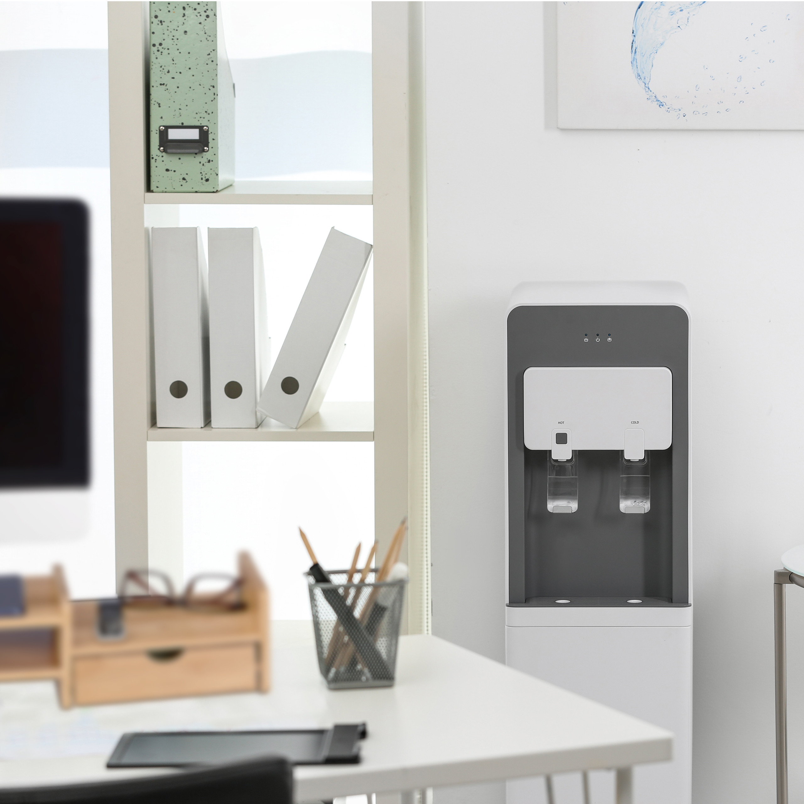 • Praktiškas stalčius: Puikiai tinka smulkiems biuro reikmenims, rašikliams ir vizitinėms kortelėms laikyti.