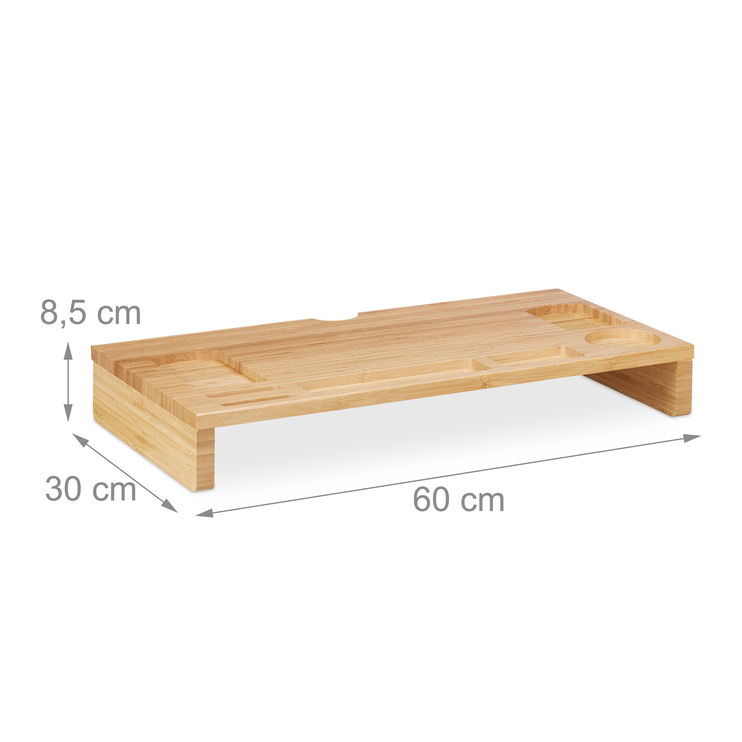 Monitoriaus stovas su skyriais 8,5x60x30cm, šviesiai rudos spalvos