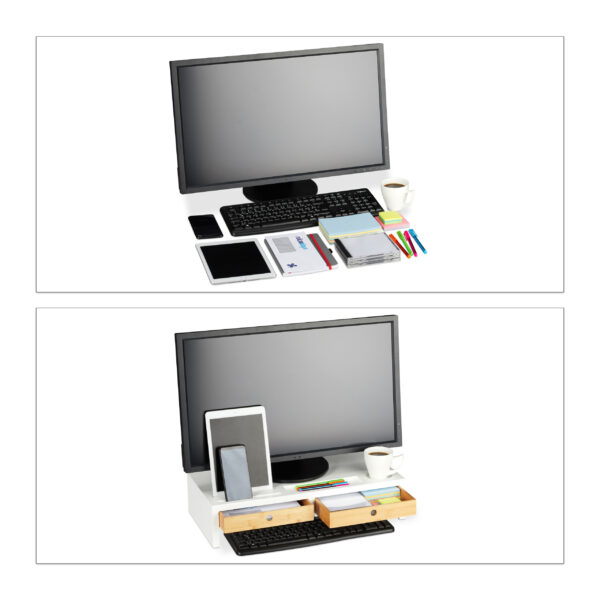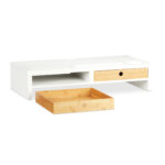 Monitoriaus stovas su stalčiais 12×55,5x27cm, šviesiai rudos/baltos spalvos