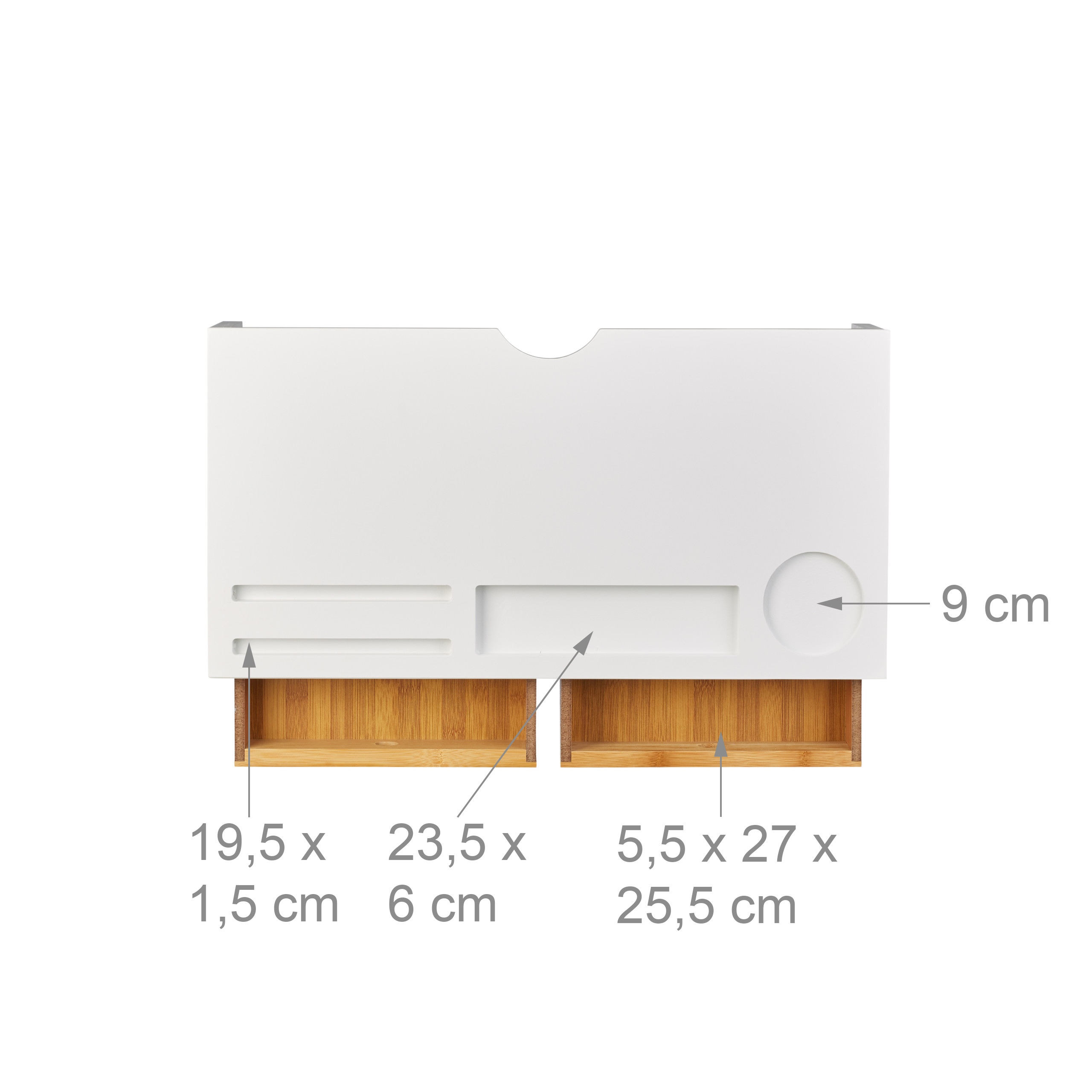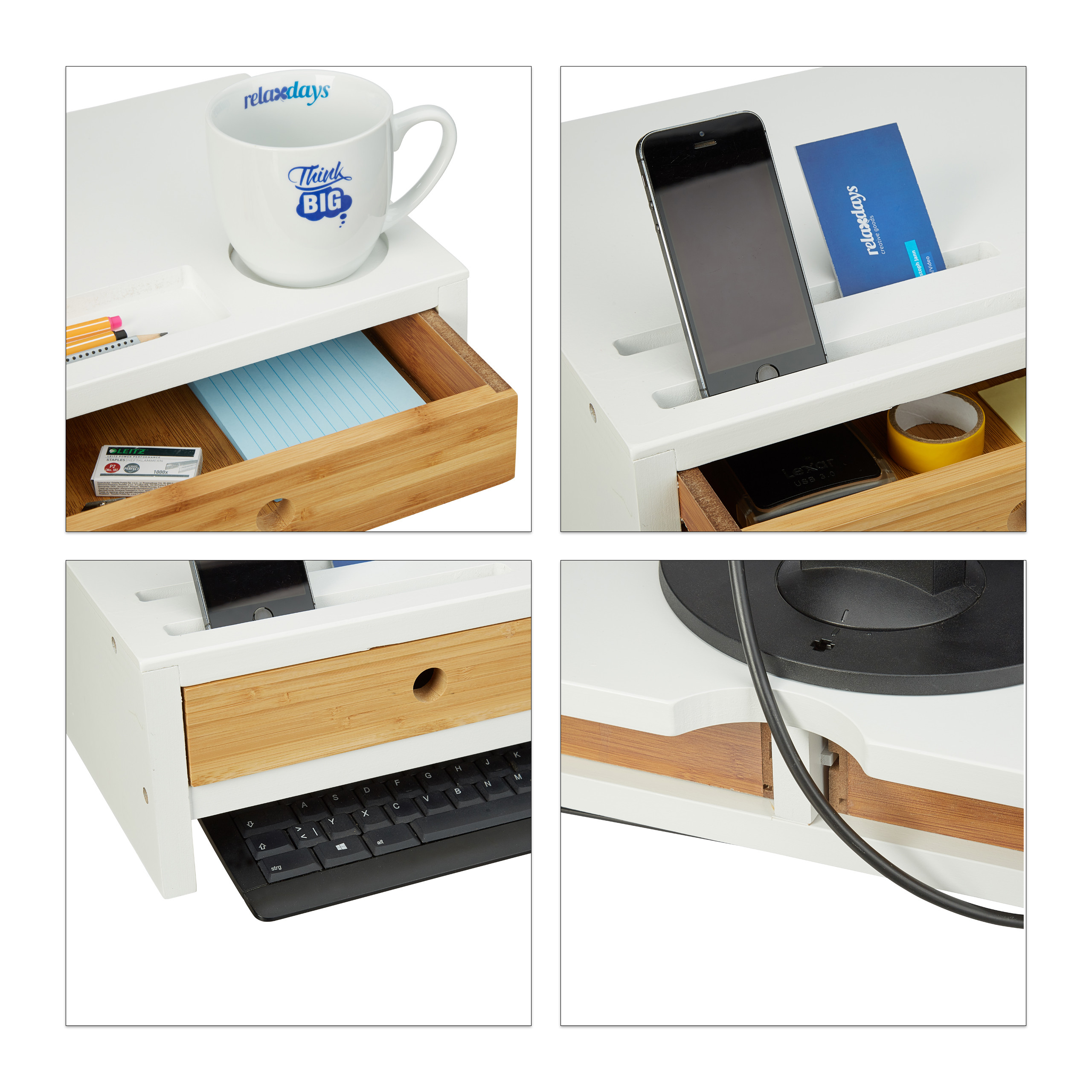Monitoriaus stovas su stalčiais 14x60x30cm, šviesiai rudos/baltos spalvos