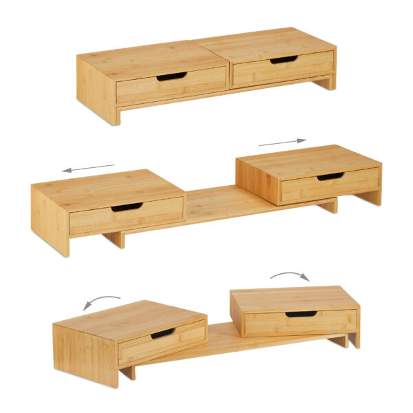 - Dydis: 11x107x22 cm – puikiai tinka dviem monitoriams, suteikiant pakankamai vietos ir stabilumo.