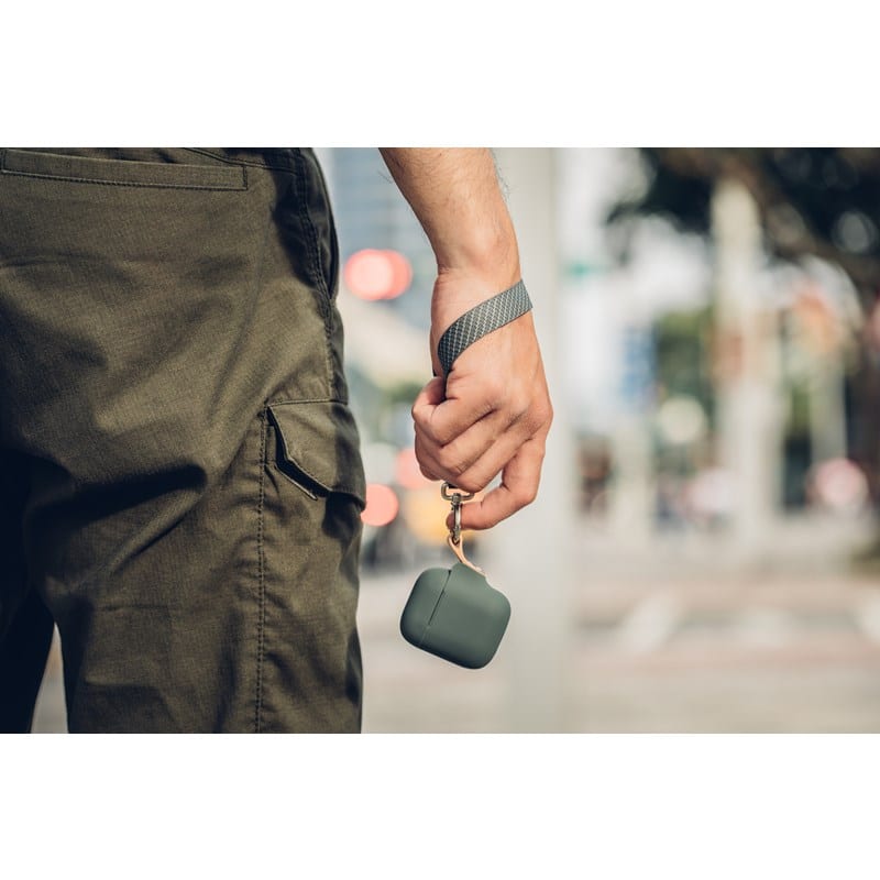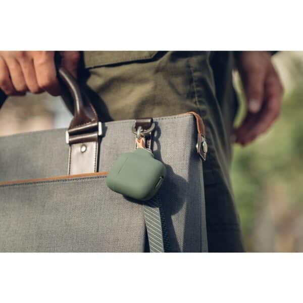 Moshi Pebbo dėklas AirPods su nuimamu riešo dirželiu ir LintGuard™ apsauga – mėtų žalia