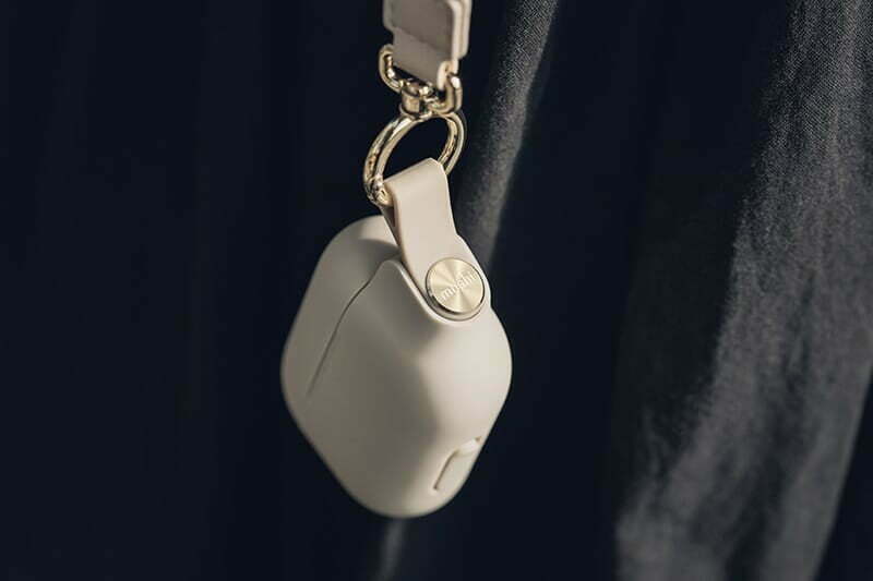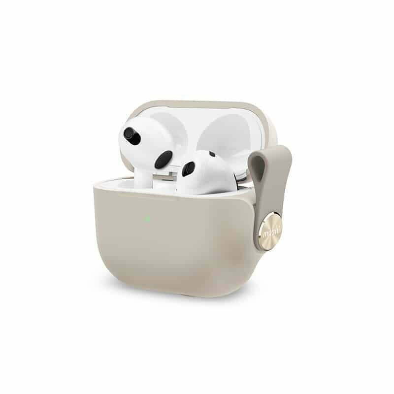 Moshi Pebbo dėklas, skirtas AirPods 3 su nuimamu riešo dirželiu ir LintGuard™ apsauga – Savanna Beige