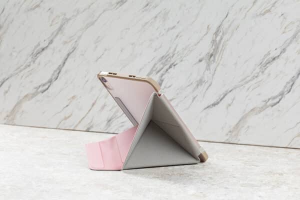 Origami įkvėptas dėklas, užtikrinantis 360° apsaugą iPad mini ir palaikantis kelis žiūrėjimo kampus. Mikropluošto dangtelis su magnetiniu užsegimu apsaugo jutiklinį ekraną ir „Apple Pencil“, taip pat tvirtinamas prie metalinių paviršių, kad būtų galima žiūrėti laisvų rankų įranga.Minkštas mikropluošto dangtelis apsaugo jūsų jutiklinį ekraną, o smūgius sugeriantis rėmelis apsaugo jūsų įrenginį nuo įbrėžimų ir sukrėtimai. Apdovanojimus pelnęs „VersaCover“ viršelio dizainas rodo jūsų iPad visais stačiais kampais, kad galėtumėte vesti tekstą, skaityti ir naršyti internete.Priekyje esantis magnetinis užsegimas ne tik apsaugo VersaCover ekrano dangtelį saugiai uždarytą, kai jis nenaudojamas, bet ir uždengia „Apple Pencil“, kad pasiūlytumėte papildomą apsaugą ir išvengtumėte nuostolių kraunant.