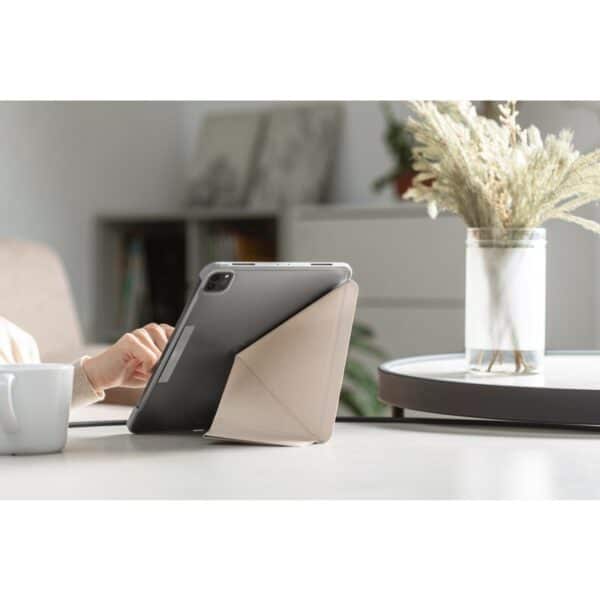 Apsaugokite savo iPad stilingai su VersaCover apdovanojimus pelniusiu dizainu. Origami įkvėptas unikalus sulankstomas dangtelis rodo jūsų iPad visais stačiais kampais, kad galėtumėte vesti tekstą, skaityti ir naršyti internete. Minkštas mikropluošto dangtelis apsaugo ekraną, o smūgius sugeriantis rėmas, pritvirtintas prie nedūžtančio kieto korpuso korpuso, apsaugo jūsų įrenginio aliuminio nugarėlę nuo įbrėžimų ir smūgių. „VersaCover“ įtaisytas magnetas palaiko „iPad“ automatinio pažadinimo / miego funkciją, kad galėtumėte greitai pasiekti visas jūsų programas ir laikmeną. Sujungus ploną formą ir patvarų funkcionalumą, „VersaCover“ leidžia paversti savo iPad stilingu dėklu, kuris atlaiko laiko išbandymą.Įkvėptas origamiStilingai apsaugokite savo iPad. Apdovanojimus pelnęs „VersaCover“ dizainas sulankstomas į patogų žiūrėjimo stovą.3 žiūrėjimo parinktysDėl unikalaus sulankstomo dangtelio jūsų iPad pastatomas visais stačiu kampu, kad galėtumėte vesti tekstą, skaityti ir naršyti internete. br>360 laipsnių apsaugaMinkštas mikropluošto dangtelis apsaugo jūsų jutiklinį ekraną, o smūgius sugeriantis rėmelis apsaugo jūsų įrenginį nuo įbrėžimų ir smūgių.Mokymo asistentasPriklijuokite „VersaCover“ magnetiniu būdu prie lentos, kad išlaikytumėte vaizdo įrašus ir kitas internetinis turinys šalia mokant.Pakabinkite ir žiūrėkiteVersaCover magnetinis dangtelis leidžia saugiai pakabinti ant bet kokio metalinio paviršiaus. Puikiai tinka šaldytuvams, kad būtų galima lengvai sekti mėgstamus receptus.Apsaugokite savo Apple PencilVersaCover magnetinis atvartas išlaiko dėklą uždarytą ir apsaugo Apple Pencil kraunant.Palaiko automatinį -pabusti / užmigtiLengvai pažadinkite savo iPad ir vėl užmigdykite, nespausdami jokių mygtukų.Veikia su Apple Pencil Case (parduodamas atskirai)Nešiokitės Apple Pencil ir laikykite jį pritvirtintą prie „VersaCover“, kad būtų dar patogiau.Kokybiškos medžiagosMes neapsunkiname naudojamų medžiagų kokybės ir ilgaamžiškumo.Savybės:· Unikalus origami sulankstomas dangtelis veikia kaip stovas· 3 žiūrėjimo parinktys, leidžiančios padėti iPad visais stačiu kampu, kad galėtumėte rašyti, skaityti ir naršyti internete· Vandeniui atsparus mikropluošto priekis dangtelis gali išvengti dėmių, taip pat gali suminkštinti ir apsaugoti jutiklinį ekraną· Magnetinis atvartas apsaugo dangtelį uždarytą ir saugiai, o taip pat apsaugo jūsų Apple pieštuką· Palaiko au pabusti / užmigti· Lengva prieiga prie visų iPad mygtukų ir kamerų· 360 laipsnių apsauga, kad apsaugotų jūsų jutiklinį ekraną, o smūgius sugeriantis rėmas apsaugo jūsų įrenginį nuo įbrėžimų ir smūgių