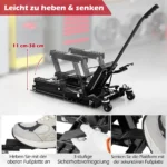 Motociklo keltuvas 106x36x91cm, juodos spalvos, yra praktiškas ir patikimas įrankis motociklų, keturračių ir purvo motociklų priežiūrai. Hidraulinė sistema užtikrina sklandų kėlimo procesą, o tvirtas metalinis rėmas suteikia stabilumą ir saugumą darbo metu.