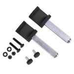 - Motociklo domkrato tvirtinimo kronšteinai yra visiškai gumuoti, kad nesubraižytų pasukamos svirties.