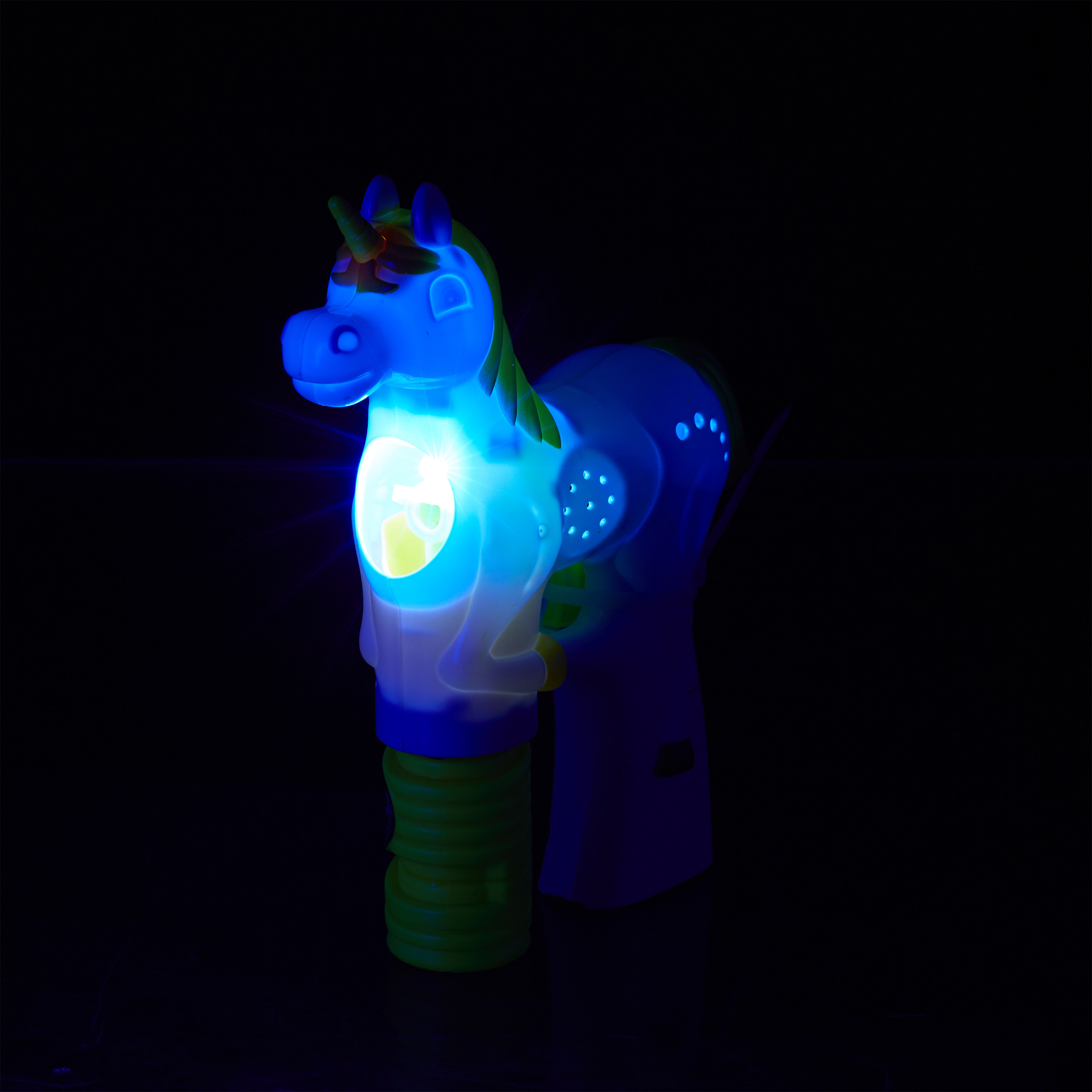 - Funkcija: Iššauna daugybę spalvingų muilo burbulų