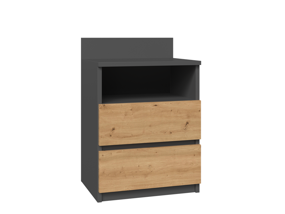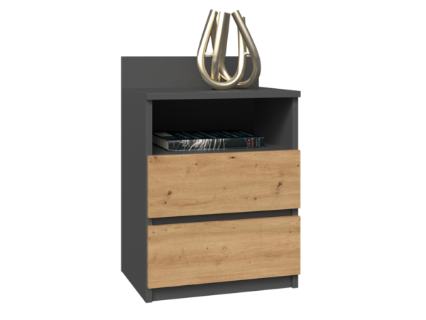 Dviejų stalčių ir vienos lentynos naktinė spintelė;