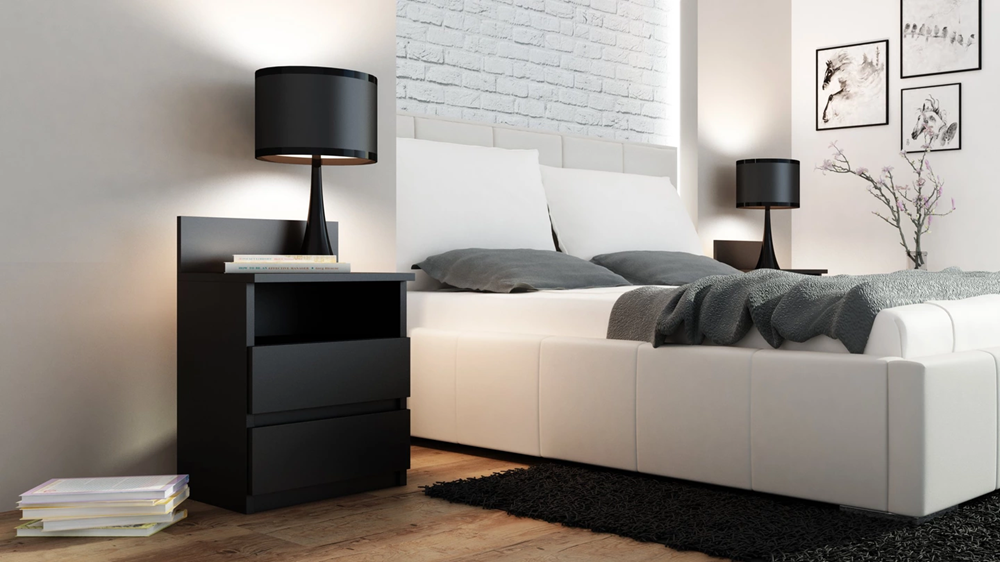 Dviejų stalčių ir vienos lentynos naktinė spintelė;