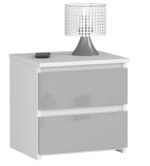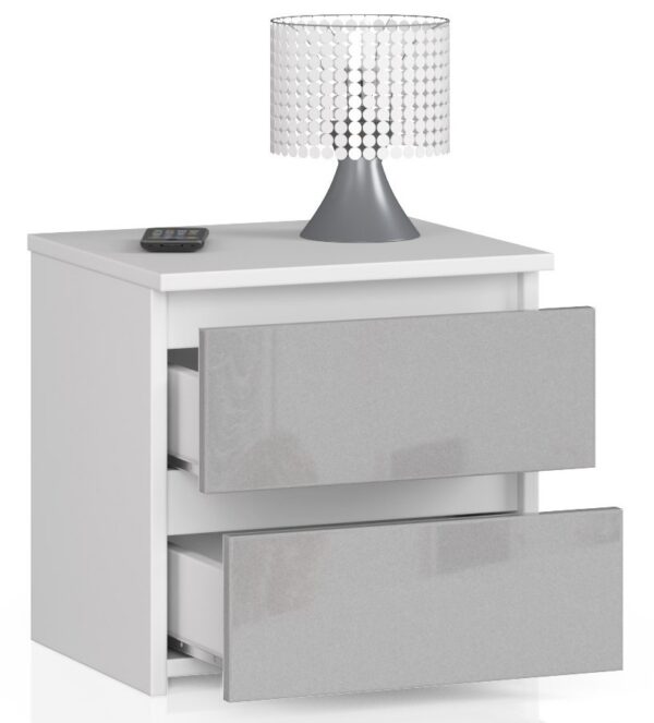 Madingas CL2 naktinis staliukas 40 cm metalo akrilo blizgesys yra produktas, kurį galite rasti mūsų parduotuvėje. Spintelė pagaminta iš trinčiai atsparių laminuotų plokščių. Dėl to būsite garantuoti, kad šis gražus baldas jums tarnaus ilgus metus, neprarasdamas savo estetinės vertės. Verta paminėti, kad fasadai taip pat pagaminti iš metalinio blizgumo plokštės. Naktinis staliukas CL2 turi daug privalumų, vienas iš jų yra: – pagamintas iš laminuotos plokštės, p> – prie dėžutės pridedama instrukcija, kuri padės pirkėjui pačiam surinkti spintelę, – madinga išvaizda, – 24 mėnesių garantija. > Baldai, kuriuos rasite mūsų pasiūlyme, yra itin funkcionalūs. Spintoje yra du stalčiai, kuriuose tikrai tilps visi reikalingi daiktai. Jei jūsų butas ar namas buvo sutvarkytas pagal glamūrinį stilių, tada ši spinta puikiai tiks. Be to, šios spintelės stalčiai veikia ant metalinių ritinėlių kreiptuvų. Kad spintos prailginimas būtų dar labiau apsaugotas, jos kraštai ir fasadai padengti ABS apvadu. Jo paskirtis – suteikti baldams aukštą apsaugą nuo bet kokių mechaninių pažeidimų.