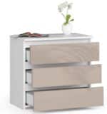 Naktinė spintelė NORE CL3 60 cm. su 3-imis stalčiais, balta/kreminė
