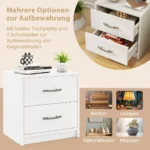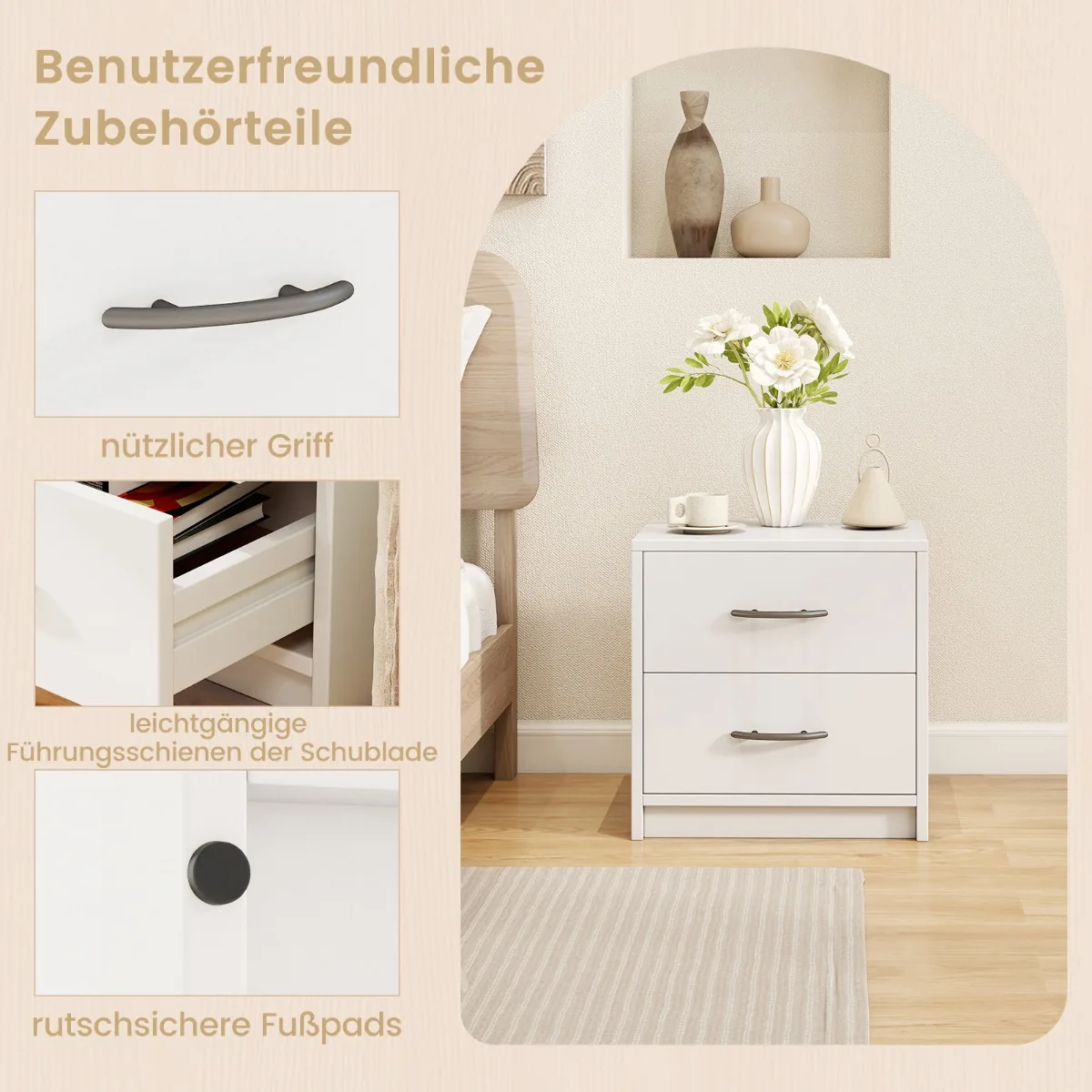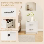 Naktinis staliukas 38,5x28x39 cm baltos spalvos yra praktiškas ir funkcionalus baldų sprendimas miegamajam ar svetainei. Šis medinis staliukas su dviem stalčiais suteikia pakankamai vietos daiktams susidėti, o jo kompaktiški matmenys leidžia optimaliai išnaudoti erdvę.