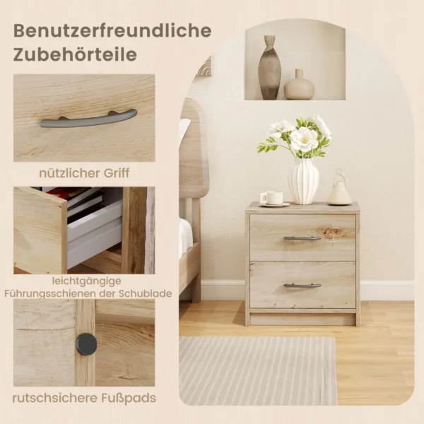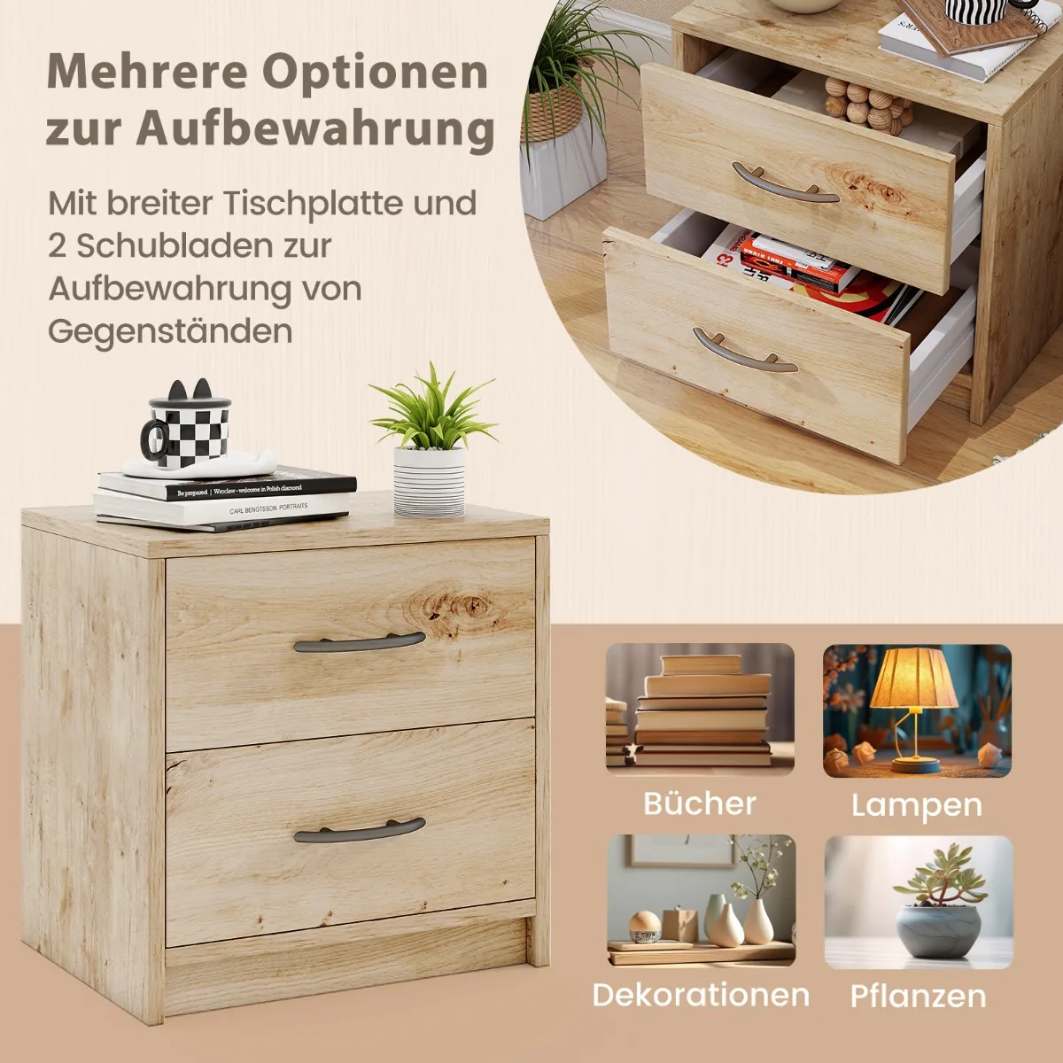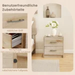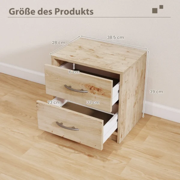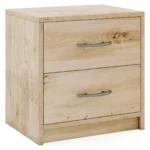 Naktinis staliukas 38,5x28x39cm šviesiai rudos spalvos – funkcionalus ir kompaktiškas baldas, tinkantis miegamojo ar svetainės erdvei. Pagamintas iš medinės plokštės, jis pasižymi tvirta konstrukcija ir talpiais stalčiais, užtikrinančiais patogų daiktų laikymą.