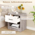 Naktinis staliukas 38,5x28x40,5cm, šviesiai pilkos ir baltos spalvos, yra funkcionalus baldų sprendimas mažoms erdvėms. Kompaktiško dydžio ir įvairiomis saugojimo galimybėmis šis stalelis tinka miegamajam, svetainei ar biurui.
