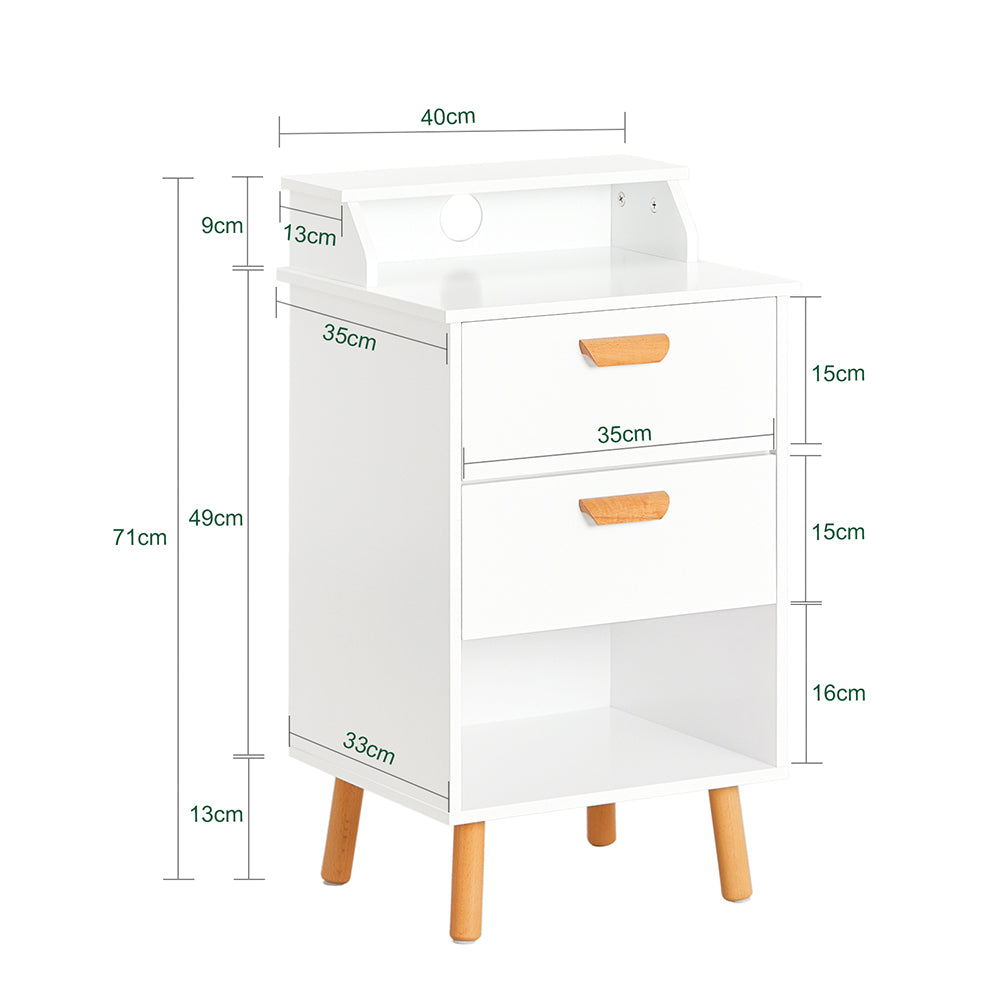 Šis naktinis staliukas 40x35x71 cm, baltos ir šviesiai rudos spalvos, yra puikus pasirinkimas jūsų miegamojo interjerui. Pagamintas iš aukštos kokybės MDF ir PB plokščių, atitinkančių E1 emisijos klasę, šis staliukas užtikrina ilgaamžiškumą ir saugumą.