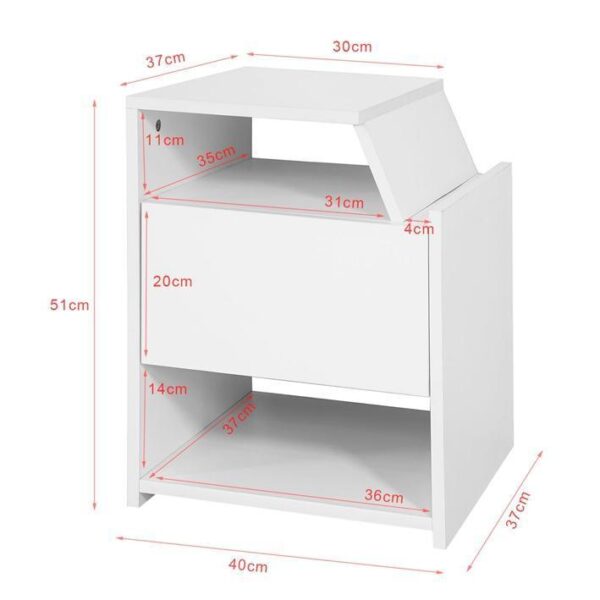 Šis elegantiškas naktinis staliukas 40x37x51 cm, baltos spalvos, yra puikus pasirinkimas jūsų miegamajam. Jo tvirta konstrukcija suteikia patikimą vietą žadintuvui, mėgstamai knygai ir kitiems daiktams, kuriuos norite turėti po ranka.