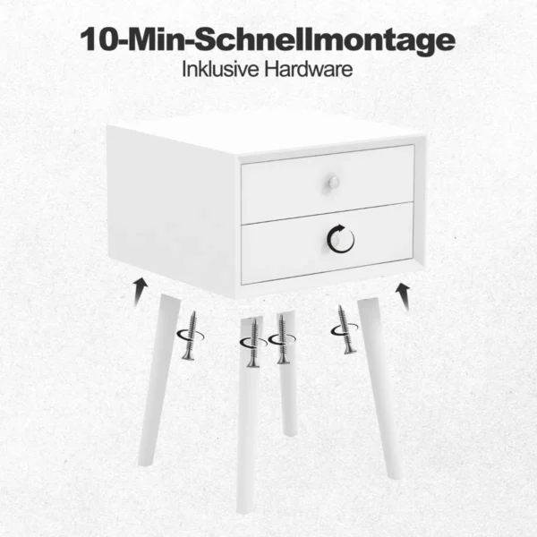 Naktinis staliukas 40x40x59,5 cm baltos spalvos – funkcionalus ir kompaktiškas sprendimas jūsų miegamojo ar kitos kambario erdvės organizavimui. Pagamintas iš MDF ir natūralios kaučiuko medienos, jis užtikrina patvarumą ir stabilumą.