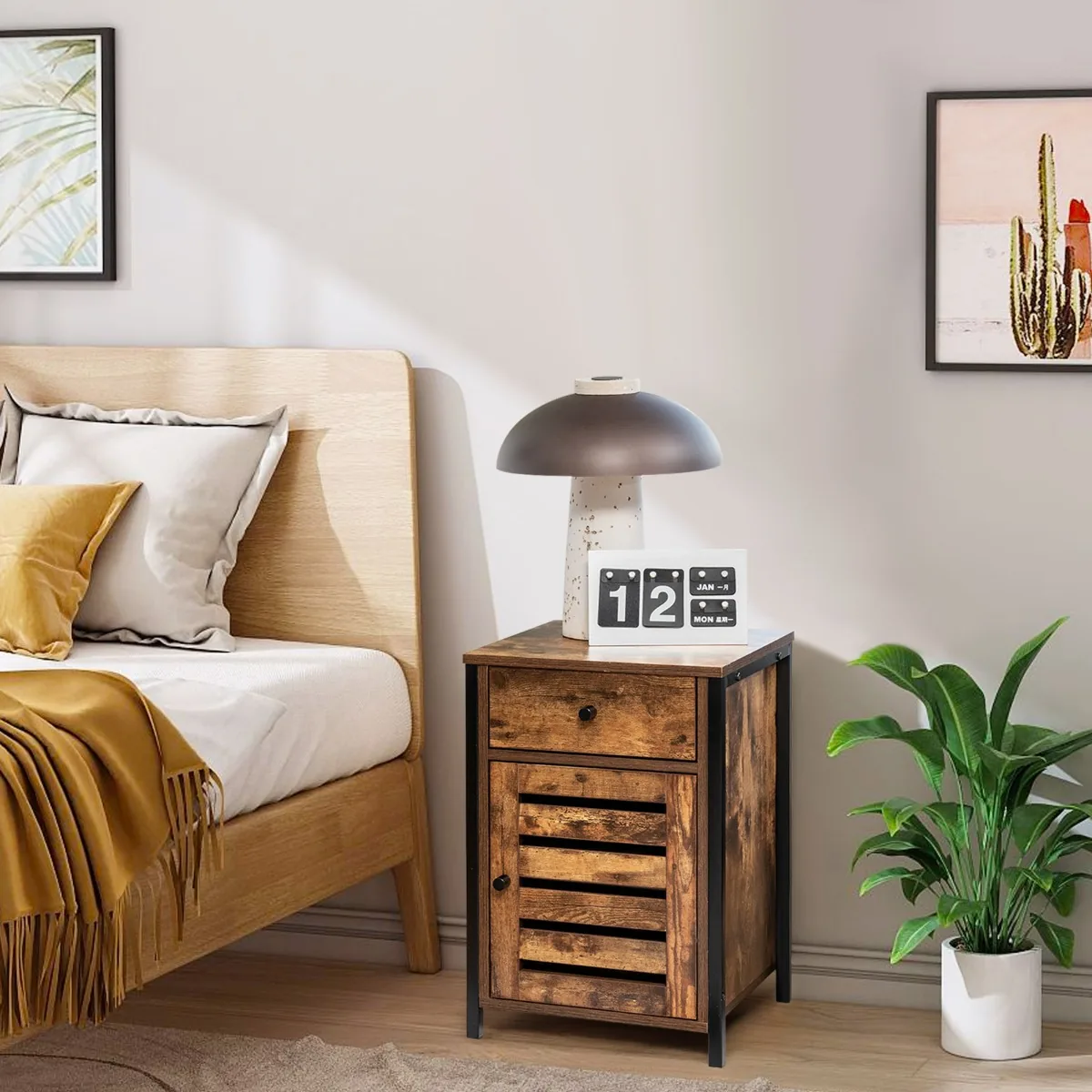 - 1 x naktinis staliukas 40x40x60cm, rudos/juodos spalvos