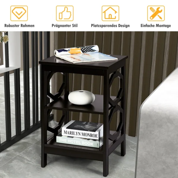 Naktinis staliukas 40x40x61cm tamsiai rudos spalvos puikiai tinka miegamajam ar svetainės interjerui. Šis daugiafunkcis šoninis staliukas suteikia papildomą saugojimo vietą ir yra pagamintas iš patvarių MDF medžiagų, užtikrinančių atsparumą drėgmei ir mechaniniams pažeidimams.