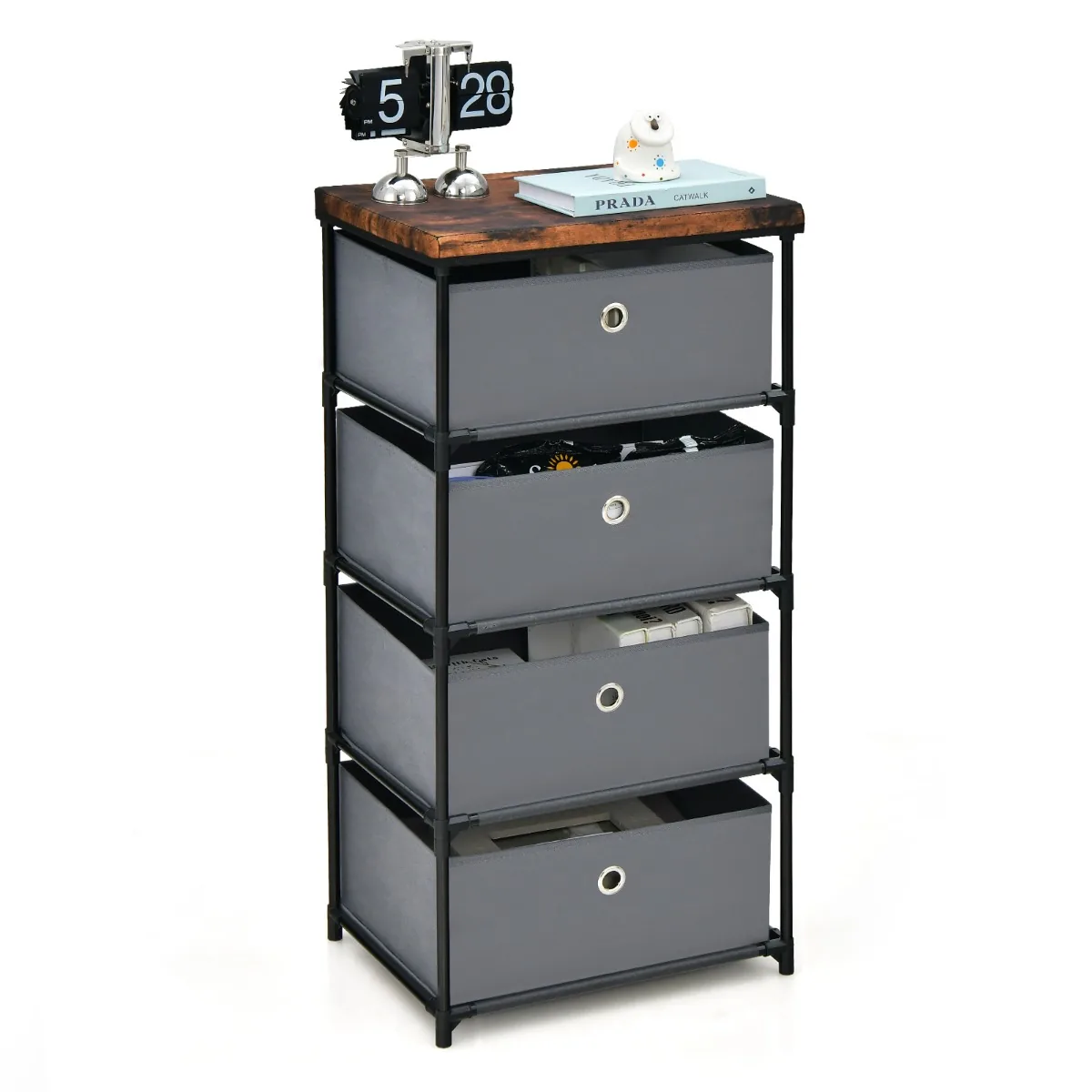 Naktinis staliukas 42×33,5×84,5cm pilkos ir juodos spalvos yra praktiškas sprendimas tiems, kurie ieško vietos daiktų laikymui miegamajame ar kitose namų erdvėse. Dėl keturių stalčių ir tvirto metalinio rėmo šis baldai padeda palaikyti tvarką ir sutvarkyti smulkius daiktus.