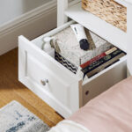 Po elegantiška išvaizda slepiasi didelė laikymo erdvė. Šis naktinis staliukas siūlo platų paviršių ir dvi papildomas stalčius kasdieniams poreikiams.