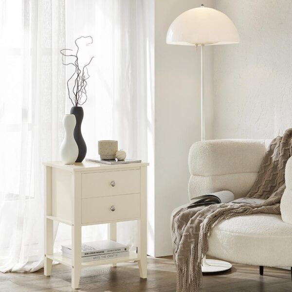 Naktinis staliukas 45x35x60 cm, kreminės spalvos, yra universalus ir stilingas baldas, kuris puikiai tiks jūsų miegamajame, svetainėje ar net biure. Šis staliukas gali būti naudojamas kaip telefonų staliukas, lentyna koridoriuje, gėlių stovas balkone ar kavos staliukas biure/svetainėje. Jo modernus dizainas puikiai dera su esamu jūsų namų interjeru.