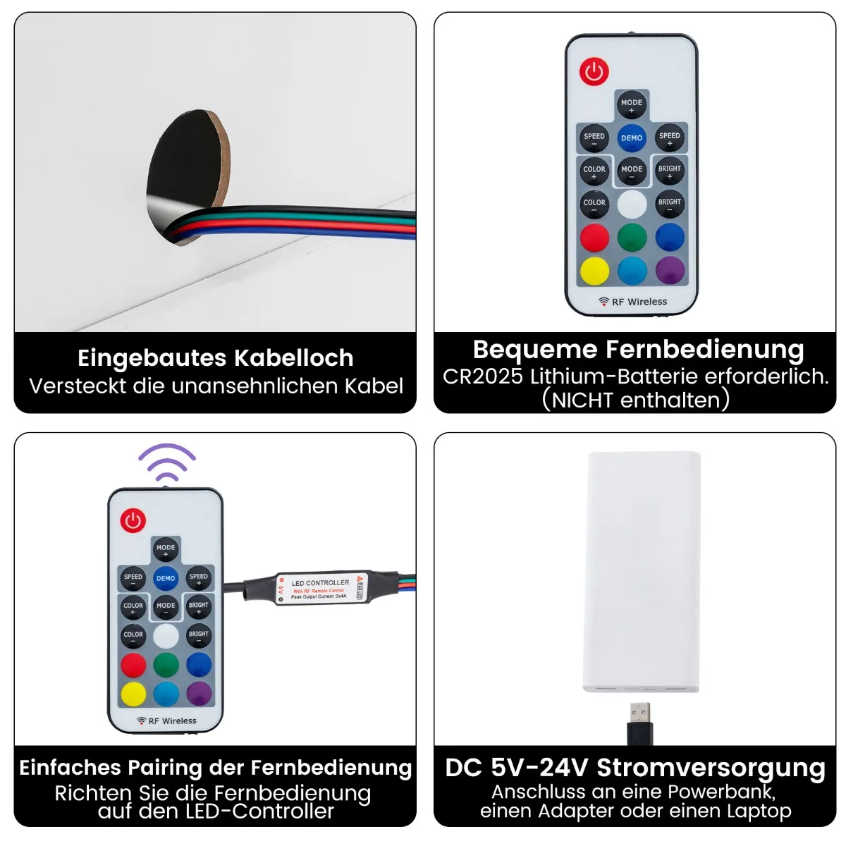 • 20 statinių spalvų ir 21 dinaminis apšvietimo režimas.