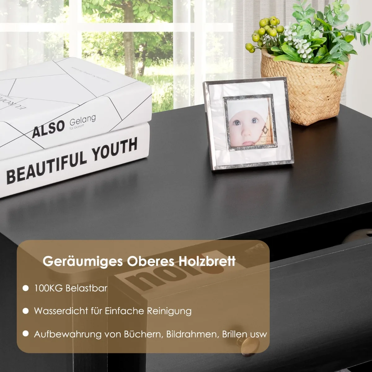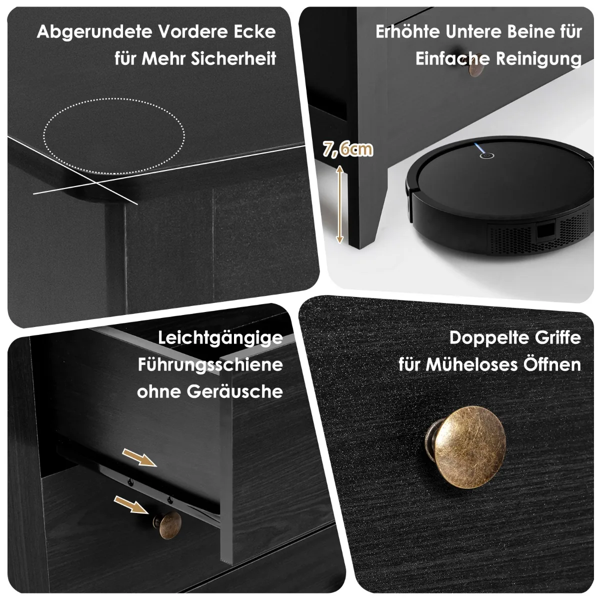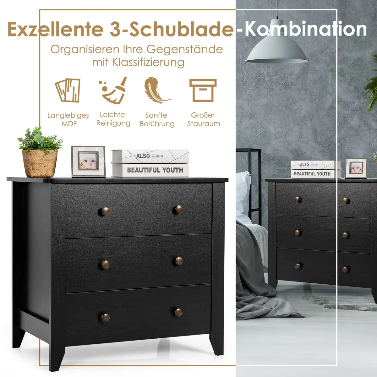 Naktinis staliukas 71x46x66cm, juodos spalvos, yra funkcionalus ir patvarus baldas, skirtas patogiam daiktų laikymui miegamajame arba kitose patalpose. Su trimis stalčiais suteikiama pakankamai vietos drabužiams ir kitoms kasdienėms prekėms.