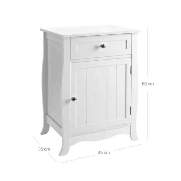 Stilingas naktinis staliukas LET02WT, baltos spalvos, su stalčiumi ir spintele. Šis elegantiškas baldas puikiai tiks jūsų miegamajam, svetainei ar bet kuriam kitam kambariui. Jame yra stalčius ir erdvi spintelė su magnetinėmis durelėmis, suteikiančios papildomą vietą daiktams laikyti.