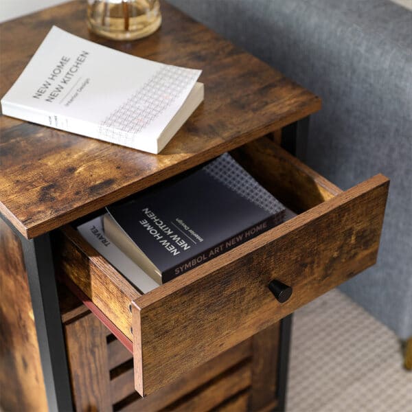 Naktinis staliukas LET063B01, rudos/juodos spalvos, yra puikus pasirinkimas jūsų miegamajam. Šis stilingas ir funkcionalus baldas suteiks jūsų kambariui elegancijos ir praktiškumo.
