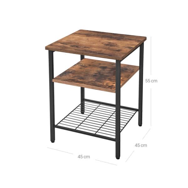 Pagamintas iš aukštos kokybės medžio drožlių plokštė (MDP) ir tvirtos geležies, šis staliukas yra ne tik stilingas, bet ir patvarus. Jo matmenys yra 45 x 45 x 55 cm , o svoris siekia 6,4 kg.
