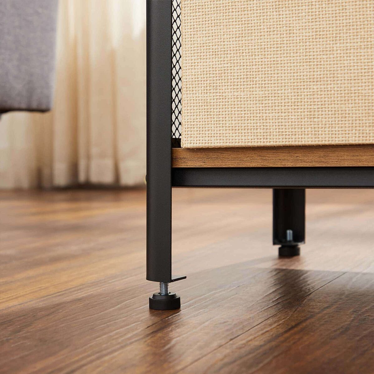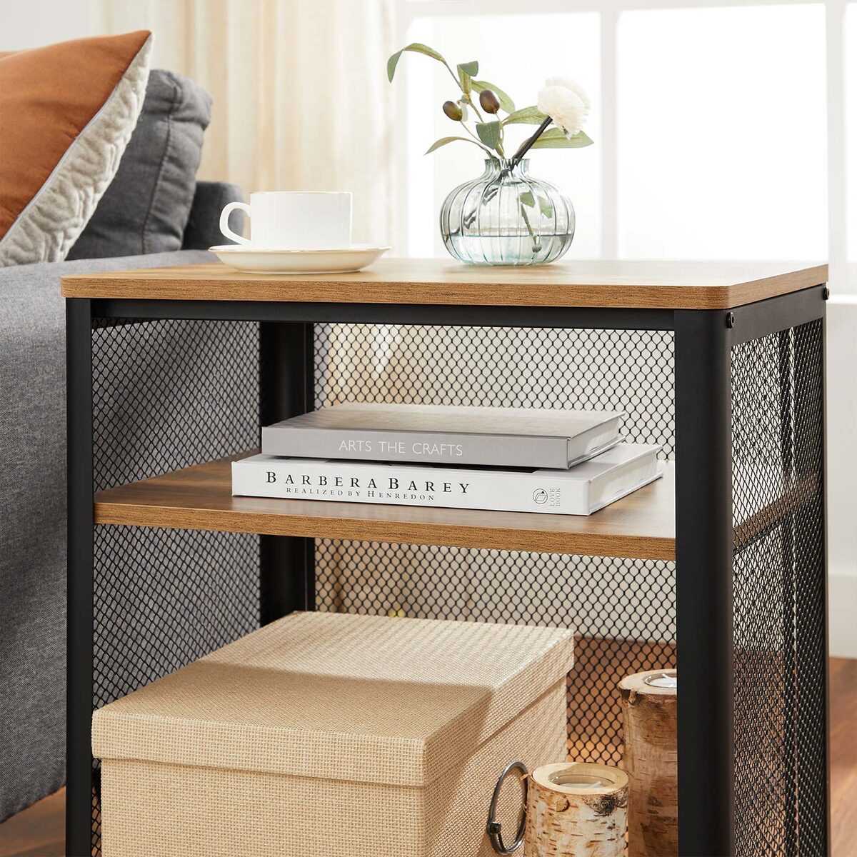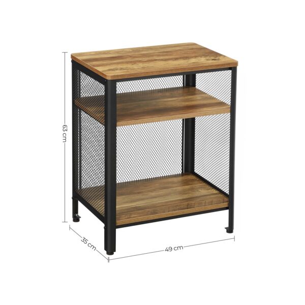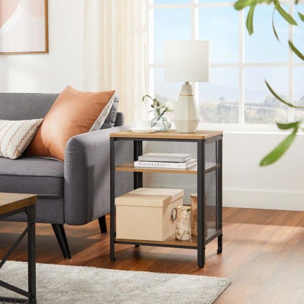 Pagamintas iš aukštos kokybės medžio drožlių plokštė (MDP) ir plieno, šis staliukas yra tvirtas ir ilgaamžis. Jo kompaktiškas dydis – 49 x 35 x 60 cm – leidžia lengvai pritaikyti jį bet kurioje kambario vietoje.